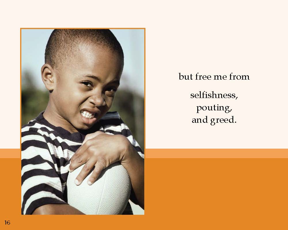 The prayer is presented in small chunks with large, full-color images that delightfully illustrate the thoughts behind the text. The book begins, “Dear Father in heaven, I come and I bow my whole self before you. Please hear me right now.” Each element of the prayer is easy to memorize. Children will learn how to approach God with words of praise and thanksgiving as well as meaningful requests.
